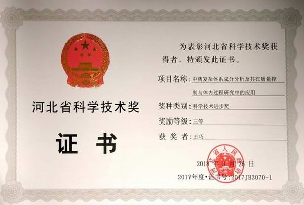 药物分析教研室在学术道路上勇于创新,在中药和化学药质量控制、体内药物分析、药物代谢动力学、代谢组学、样品前处理技术等研究方向取得了迅速发展。主持国家自然基金课题、国家教育部重点课题、河北省自然基金等课题30余项,获河北省科学技术进步二等奖2项,三等奖10余项,国家发明专利授权4项。近五年,发表科研论文100余篇,其中SCI收录80余篇,发表在Talanta, Journal of Chromatography A,Science of the Total Environment,Analytical and Bioanalytical Chemistry , Food Research International等权威期刊。