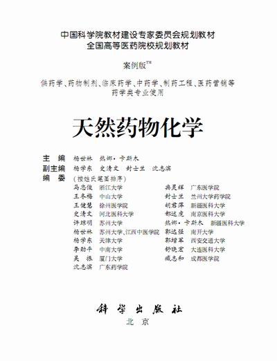 史清文教授为副主编的教材《天然药物化学》正式出版