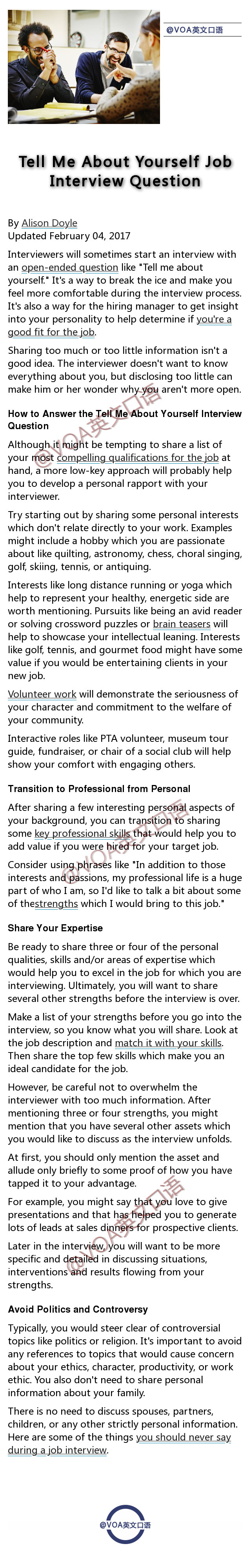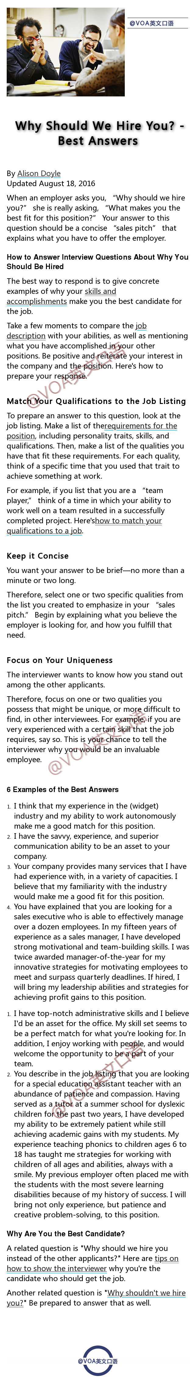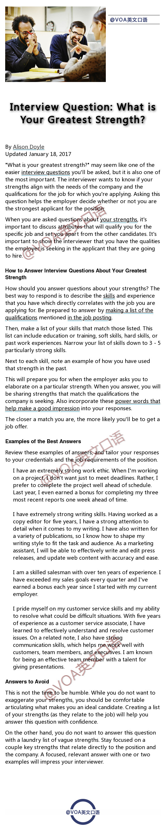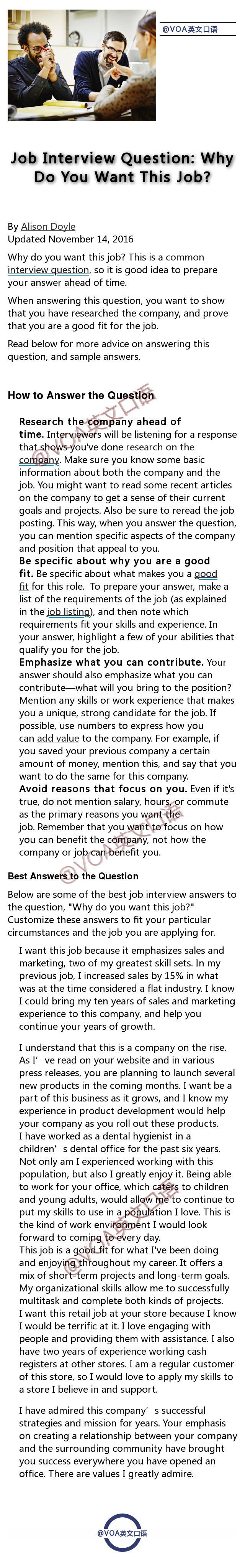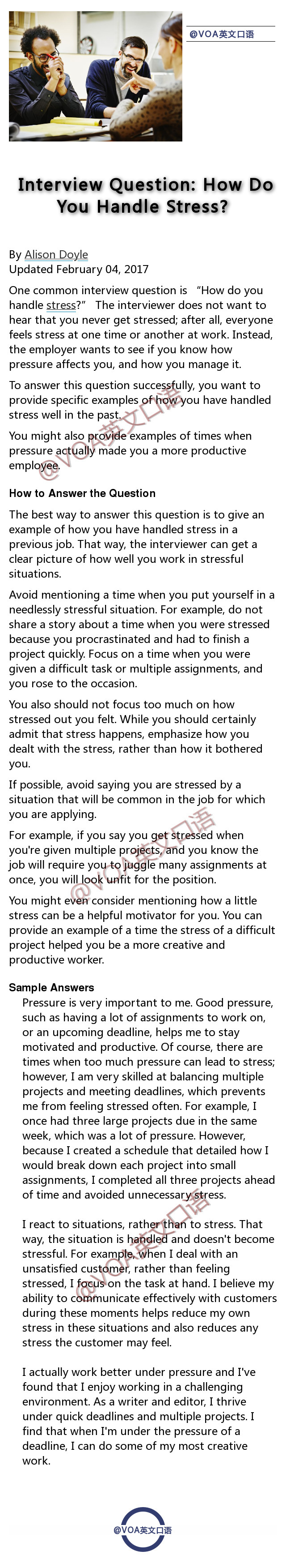 各种英语口语考试,以及外企求职,都免不了的是英文面试的考察部分。今天分享给同学们在英文面试中常见的九大问题的Sample Answers,都由Native Speaker所写,用词用句更加地道。